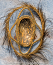 24 inches wide, 24 inches tall, 4 inches deep - Materials: Fiber, Paint and Shells - We collected this item on a trip up the Sepik River in 1997.