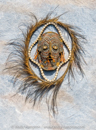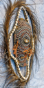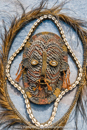 24 inches wide, 24 inches tall, 4 inches deep - Materials: Fiber, Paint and Shells - We collected this item on a trip up the Sepik River in 1997.