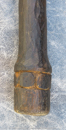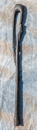 About 1 in diameter staff, 3 inches wide at handle (carved crocodile handle), 34 inches tall. Material: Carved wood. We collected this item on a trip up to PNG in 1997.