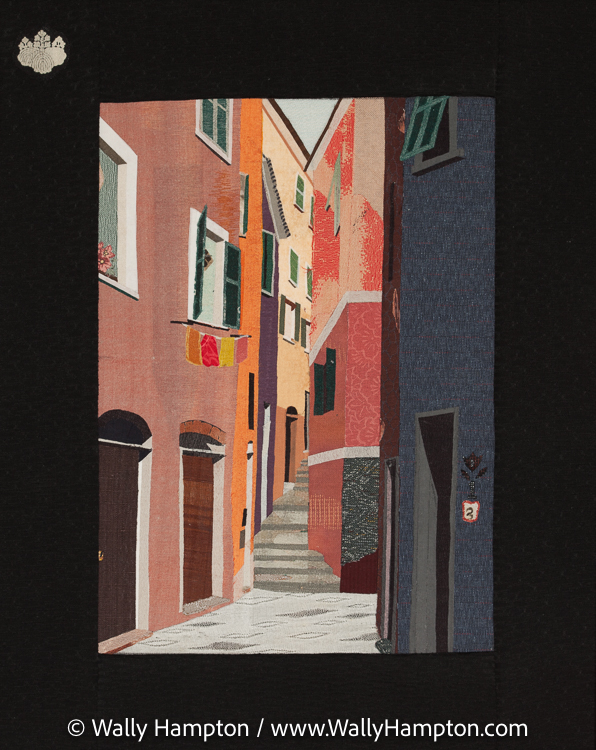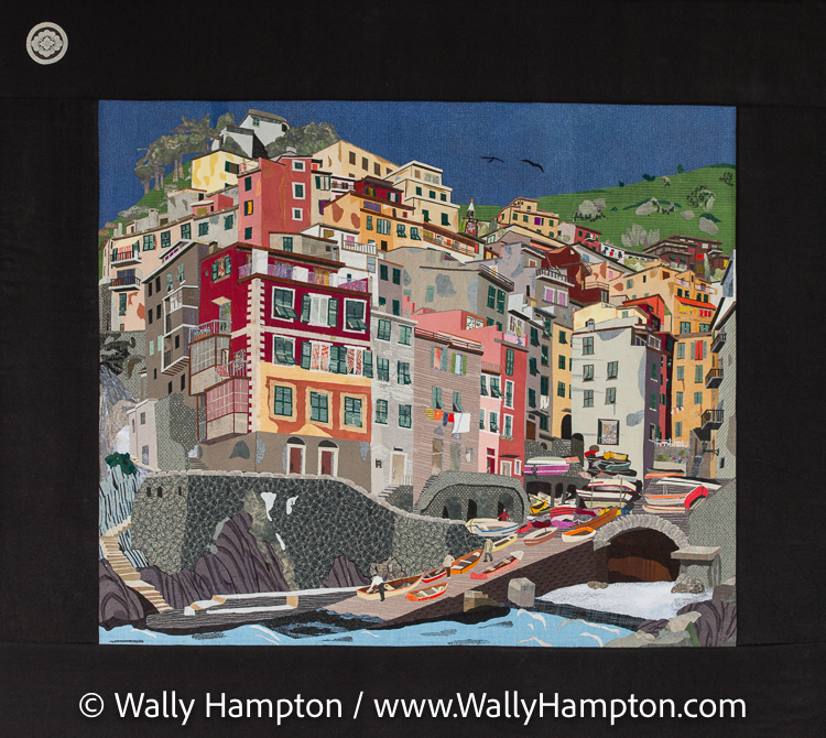 | "Riomaggiore" - Silk Fiber Collage by Phyllis Ceratto Evans |